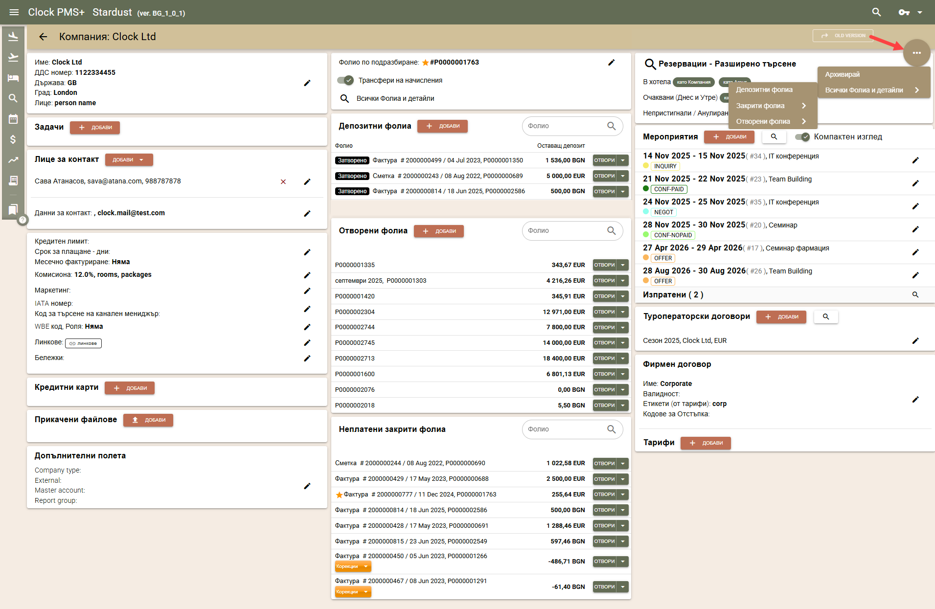 - Бързи функции за фолиата. Изведохме достъп до бързите функции на всяко фолио така, че без да напускате екрана на Компанията, да можете да начислявате услуги или да добавяте плащания.