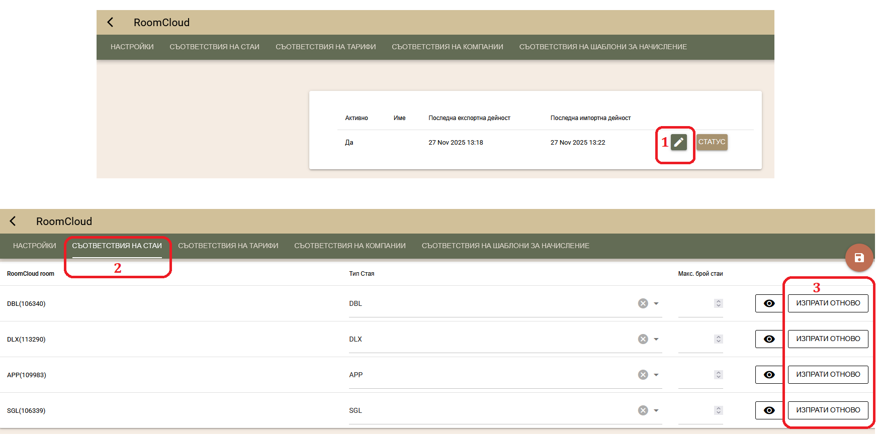 Важно: Описаната по-горе процедура не променя валутата на самите канали. За това следвайте стъпка „1. Валутата на самите канали“ от секцията „RoomCloud“ в помощната статия.