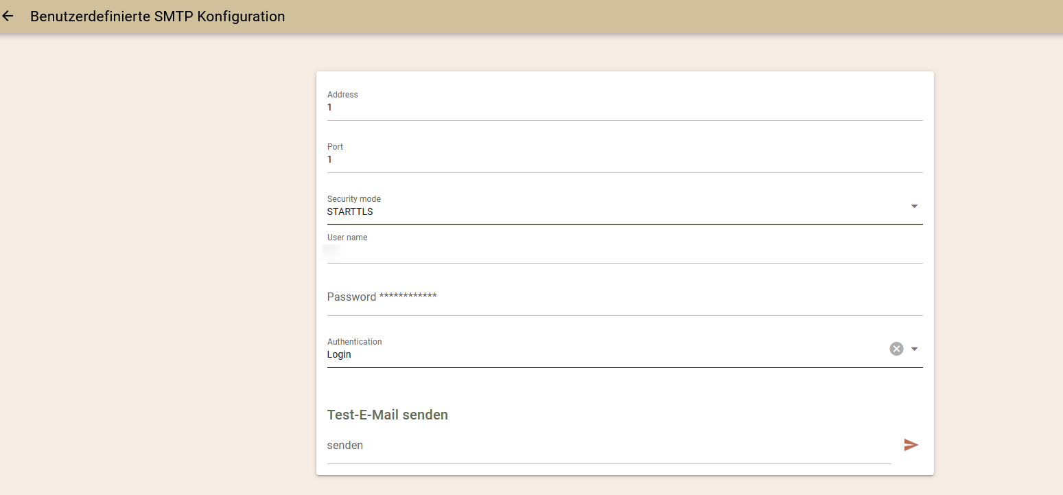 Benutzerdefinierten SMTP-Server und eigene E-Mail-Adresse als Absender verwenden (5) - Verwenden Sie diese Option, wenn Sie einen benutzerdefinierten SMTP-Server verwenden möchten. Es öffnet sich ein neues Fenster, in dem Sie die Details für den SMTP-Server eingeben können.