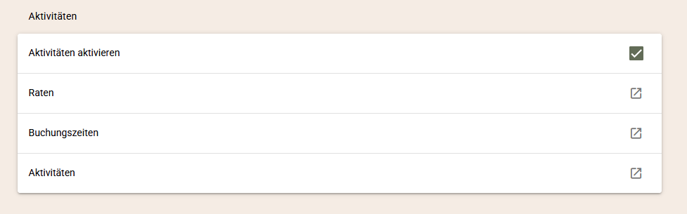 Wenn Sie extra Aktivitäten wie Verkostungen, Ausflüge, Yogakurse usw. anbieten, können Sie diese über WBE zum Verkauf anbieten. Weitere Informationen finden Sie unter HIER.