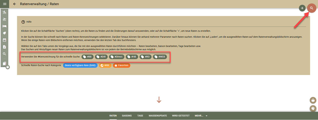 Sie haben die Möglichkeit, schnell auf die von Ihnen am häufigsten verwendeten Raten zuzugreifen, ohne die Suchfunktion verwenden zu müssen. Vergeben Sie zu diesem Zweck einfach eine Kennzeichnung, die mit dem Zeichen "#" beginnt. Auf dem Hauptbildschirm finden Sie dann Links zu allen Raten, die solche Kennzeichnungen haben