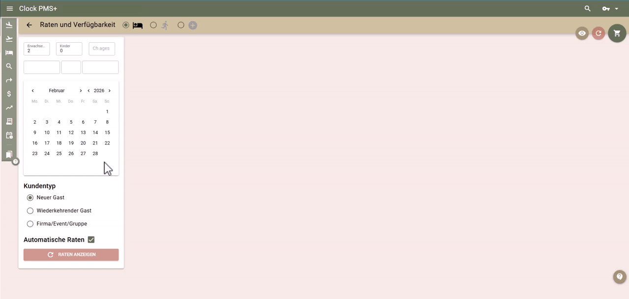 Bei der Auswahl der Firma in der Maske ‘Raten und Verfügbarkeit’ die vertraglich vereinbarten Raten einfach finden/anzeigen/auswählen