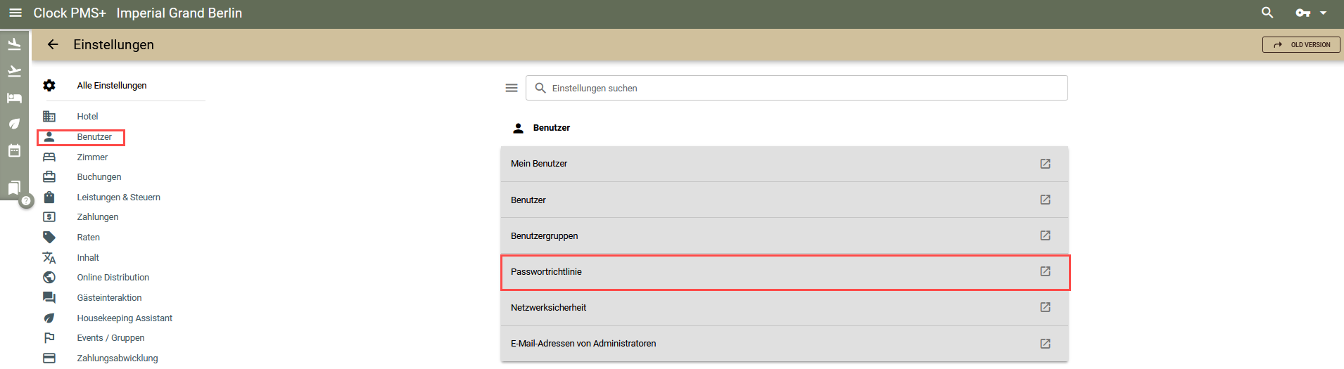 Navigieren Sie zum Konfigurieren einer Passwortrichtlinie in das Menü Einstellungen -> Alle Einstellungen -> Benutzer -> Passwort-Richtlinie.