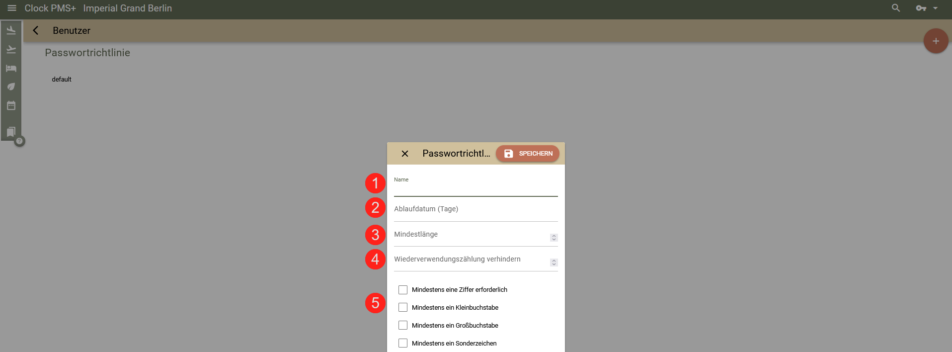 Mit dieser Funktion haben Sie die Möglichkeit, eine umfassende Passwort-Richtlinie für Ihre Benutzerkonten zu erstellen. Die Passwortrichtlinie legt fest, wie komplex ein Passwort mindestens sein muss, wie oft es vom Benutzer geändert werden muss und ob ein neues Passwort mit einem bereits verwendeten identisch sein darf.