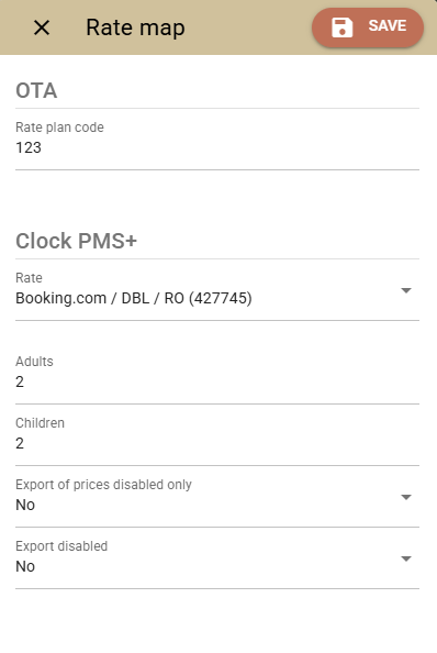 To map one Clock PMS+ rate to several rates from the Channel Manager you need to enter in the rate mapping with how many adults and children the guest level rate is to be calculated.