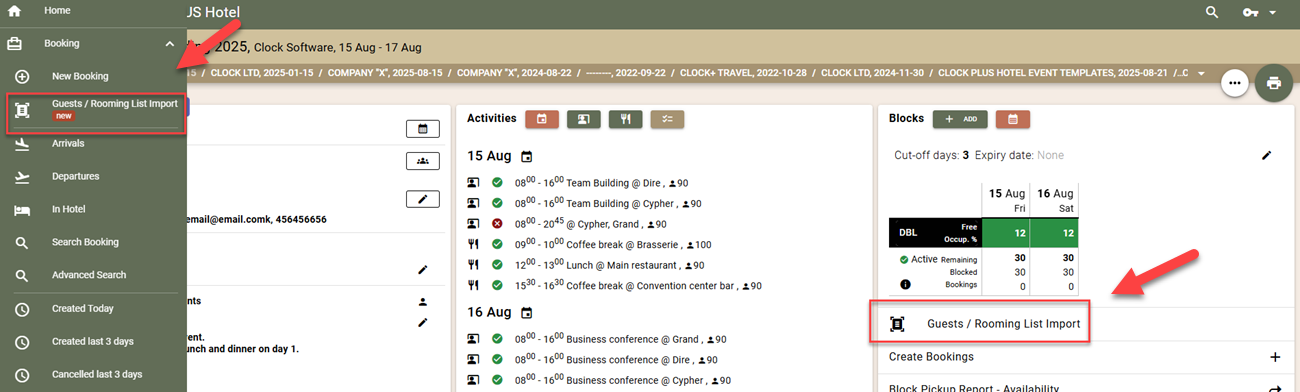 Open the new import screen. If you are in the Event, click the Guests/Rooming list - import button in the Block section or from the main navigation - the Bookings section.
