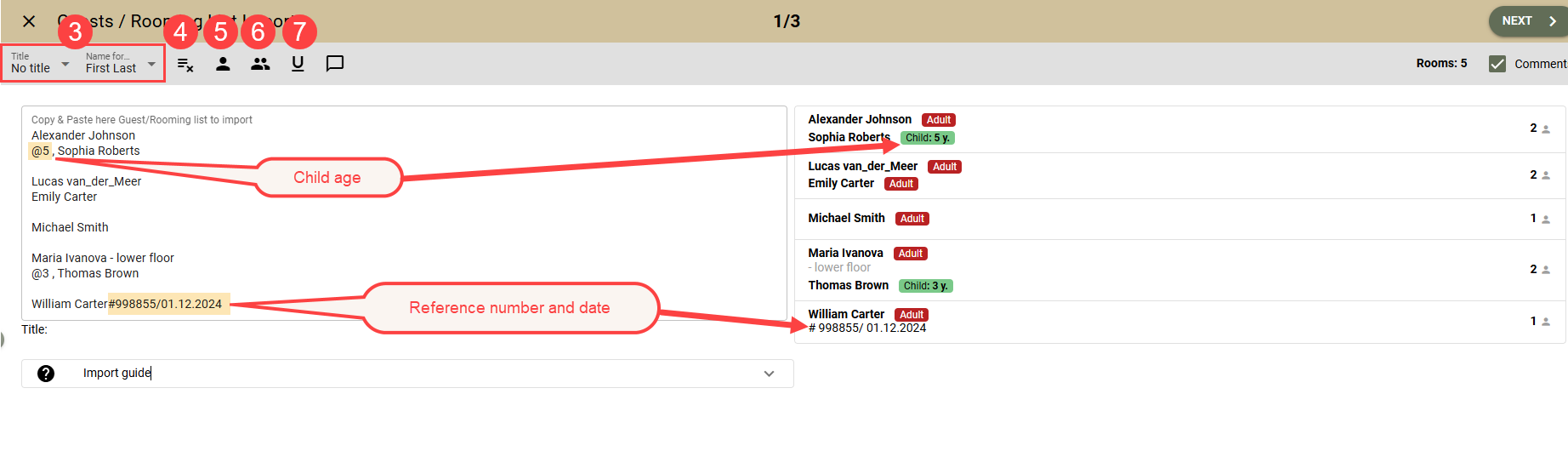Follow a few simple rules to distribute guests by rooms, and to allow the system to extract as much information as possible, without the need for manual entry: