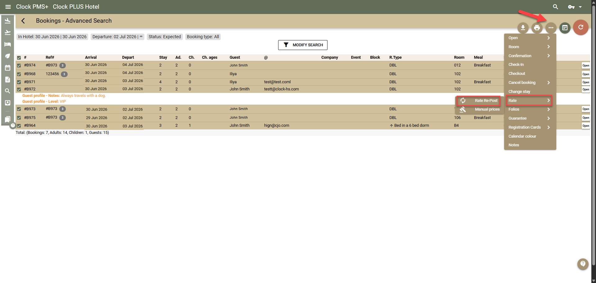 Booking → Advanced Search