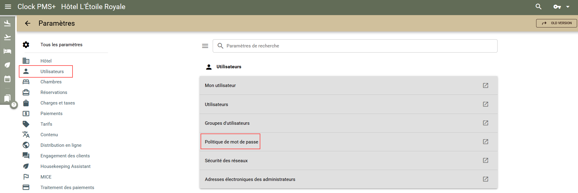 Pour configurer une politique de mot de passe, allez dans le menu Paramètres-> Tous les paramètres-> Utilisateurs-> Politique de mot de passe.
