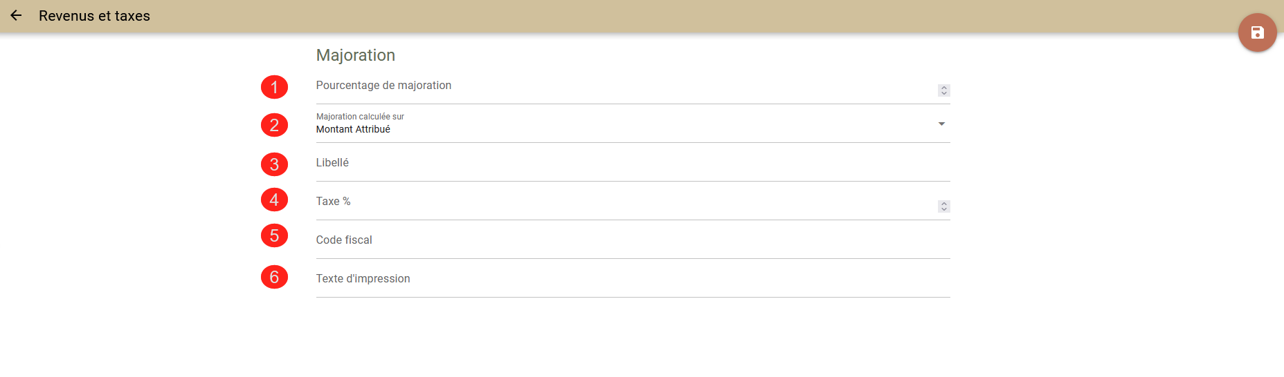 - Pourcentage de la majoration (1) - entrez le montant de la majoration;