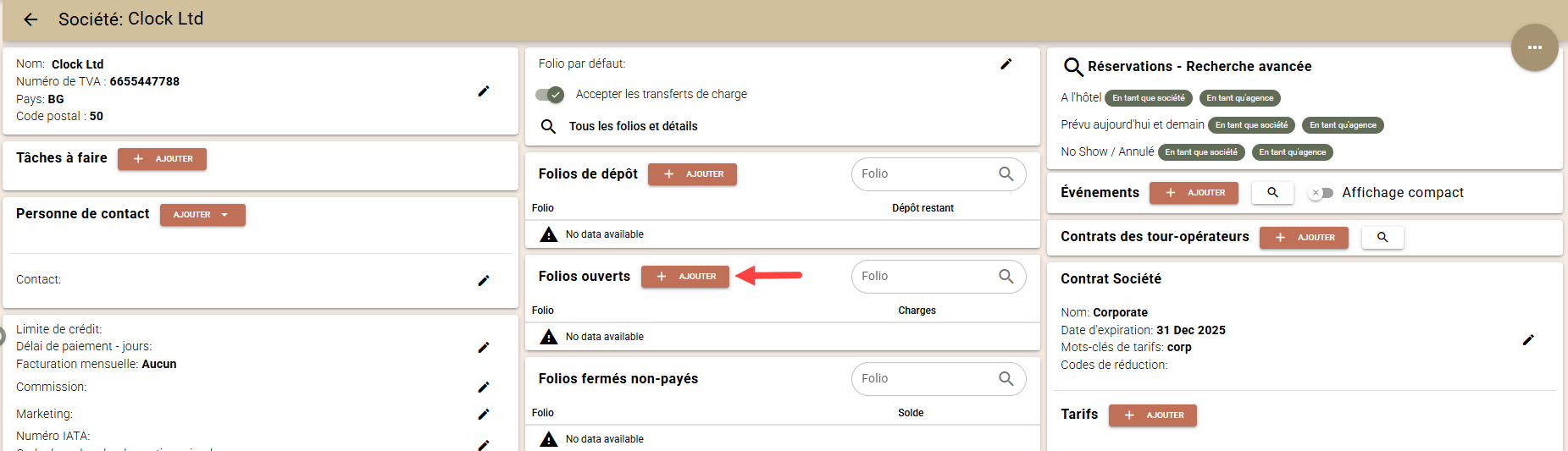 - Cliquez sur le bouton "+ Ajouter" dans la section "Folios ouverts" ;