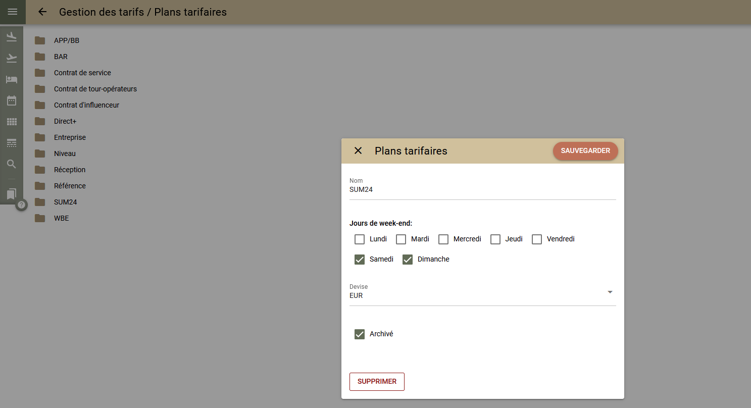 Le plan tarifaire apparaît alors dans la liste. Pour le restaurer, modifiez le plan tarifaire et supprimez la sélection 'Archivé'.