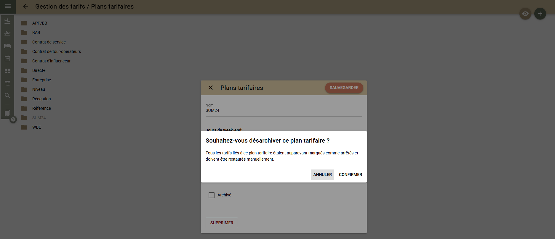 Important : une fois que vous avez restauré un plan tarifaire, vous devez modifier manuellement les tarifs et supprimer la restriction 'STOP'.